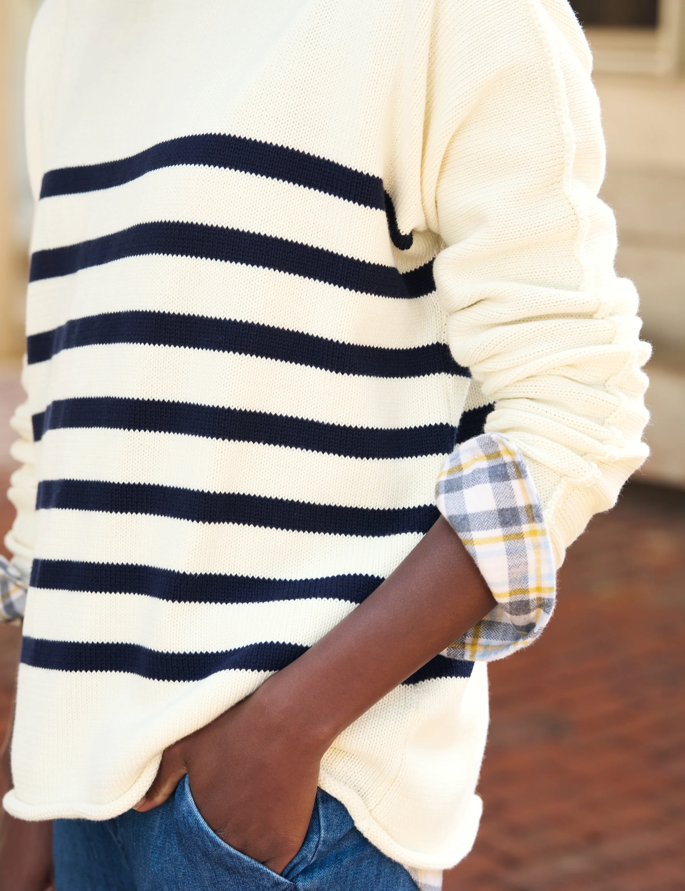 MONTEREY Cream with Navy Stripe, Pure Italian Cotton